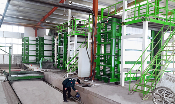The large mixing equipment independently researched and developed by our company is equipped with precise automatic batching system which can make the feeding precise and the slurry mixing more even and mixed together well. The slurry pumping system can pump the mixed slurry into the equipment more easily and conveniently. Frequency conversion foaming technology is adopt in foaming system to improve the foaming speed and save raw materials. Wall panel molding machines work automatically with high forming speed. This production line works in a high degree of automation with simple operation and high production efficiency.